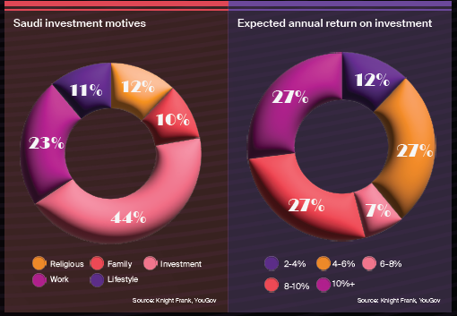 The stellar price rises – up to 40% year on year for villas in some of Riyadh’s most sought-after neighbourhoods – have not escaped the attention of the region’s investors. Survey 3 shows that GCC-based HNWI would, for the most part, make a residential acquisition ‘purely for investment or capital gains’ (42%).
