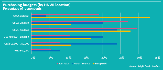 76% of East Asian respondents will set aside over US$ 1 million, with almost 20% keen to spend over US$ 5 million.