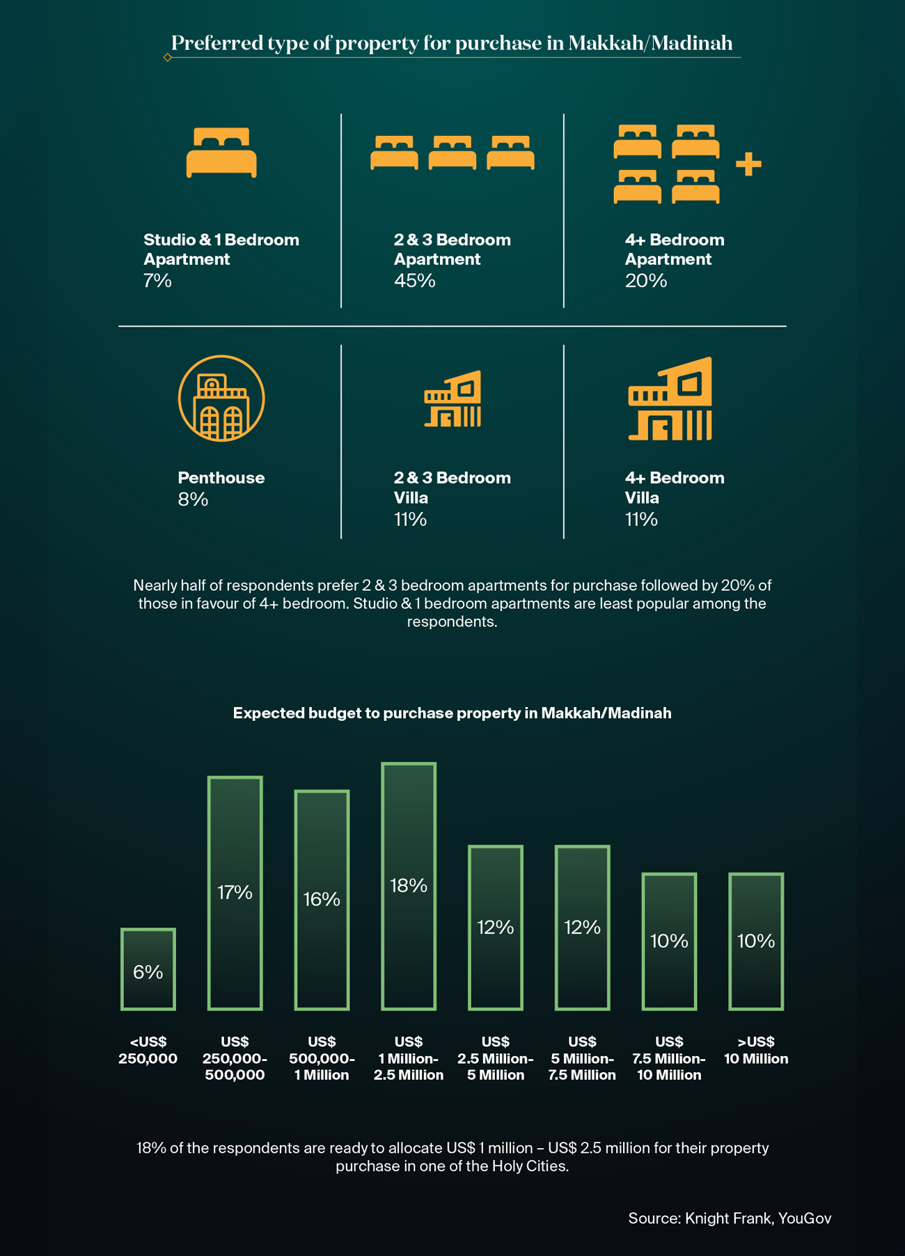 Discover the insights behind our first survey where we polled 506 high-net-worth-individuals (HNWI) from nine countries with a sizeable Muslim population (Algeria, India, Indonesia, Iraq, Iran, Malaysia, Pakistan, Singapore and Turkey) on their real estate aspirations in Saudi Arabia, with the particular focus on Holy Cities of Makkah and Madinah.
